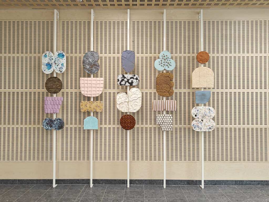 Aikuisten taiteen perusopetus, Terijoenkatu 2, 1. kerroksessa ja aulassa / Huovutustöitä, Terijoenkatu 2, pääaulan kahdella seinällä. / Piirustuksia, taito- ja taideaineiden Arthouse-tila, 2. kerroksen seinillä /Taikan teoksia, taito- ja taideaineiden Arthouse-tila, 3. kerroksen aulassa