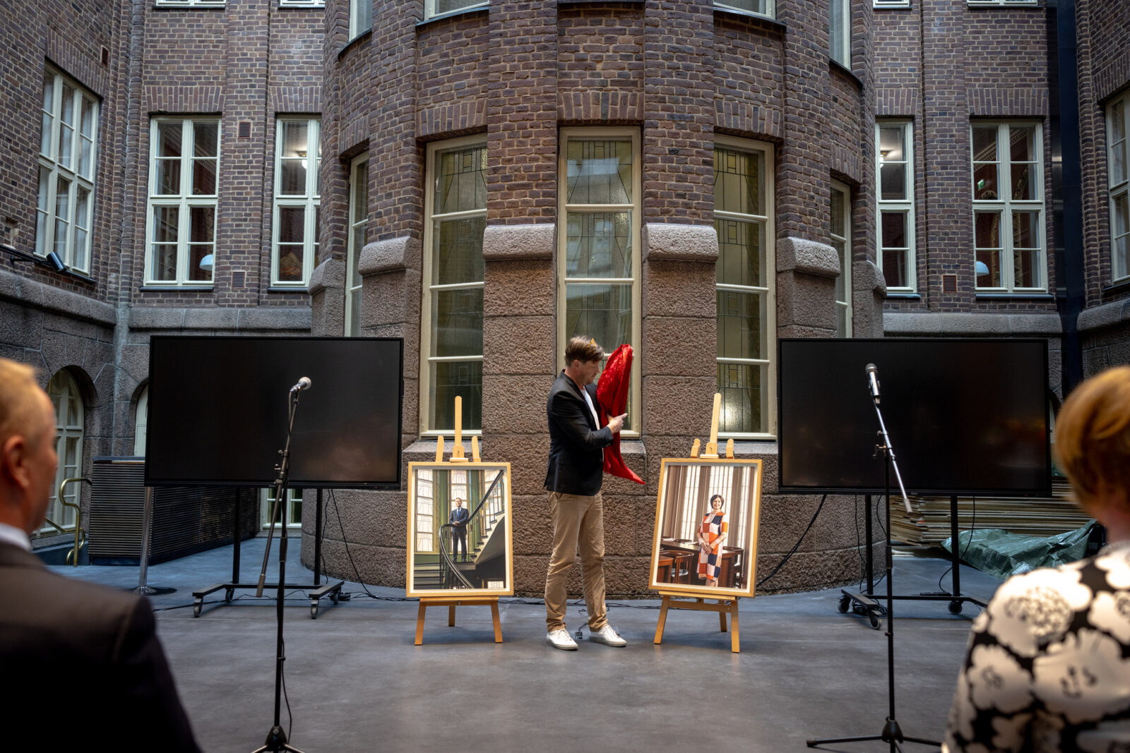 − Oli hienoa julkistaa nämä muotokuvat uudistuneessa kaupungintalossa. Julkistamistilaisuus oli ensimmäinen Lahden kaupungintalon katetulla sisäpihalla järjestetty tilaisuus, hallintojohtaja Anniina Kovero toteaa.